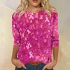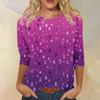Women's Fashion Casual Seven Split Sleeve Printed Loose Round Neck Top