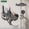 6. Ușor de utilizat:Apăsați tasta pentru a selecta modul de duș, set de duș cu baterie, pulverizator bideu pentru toaletă de înaltă presiune, raft de depozitare, cap de duș tip telefon, cu patru căi, montat pe perete, înălțime reglabilă, rotație 360 °, set de duș cu economie de apă rece și caldă