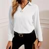 Bluză de damă toamnă primăvară cu mânecă lungă, simplă pentru birou, cu gât în V, largă, alb uni