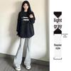 Elevate your athletic wardrobe with these high-waisted gray flare pants. Crafted from soft and breathable cotton, these pants ensure comfort and durability for various activities. The sporty style features a slimming silhouette with a unique draping horseshoe design that adds a touch of American casual flair to your look. Functional pockets offer convenience, while the high waistline emphasizes your curves, making these pants both stylish and practical for your everyday adventures.
