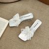 Beaded thick heel bow transparent high heel summer new women's square head sandals lace cool slippers