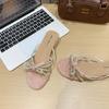 Round head beautiful rhinestone thick heel sandals women's slippers women's summer wear bow pearl small toe