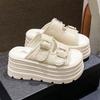 Niche retro fringed one-word slippers summer wear fashion belt buckle casual thick-bottomed beach cool slippers