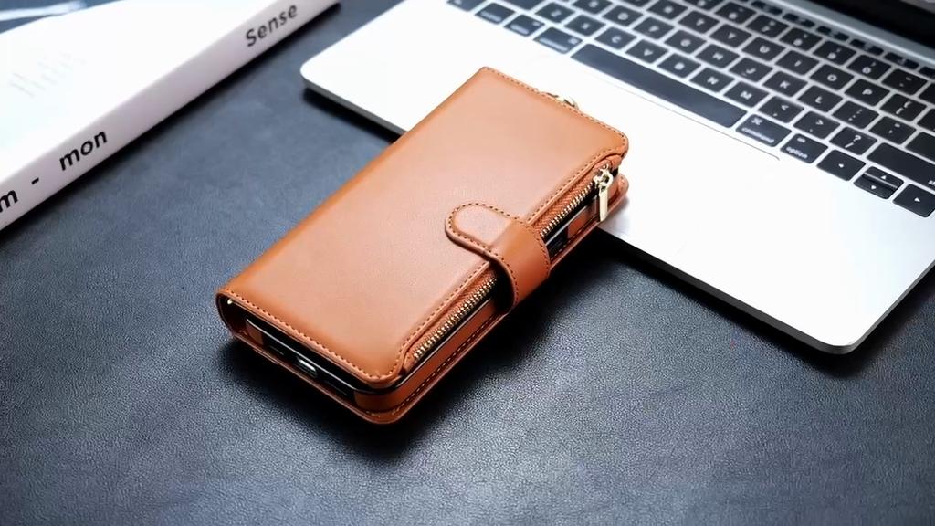 Portofel din piele cu fermoar și sloturi pentru carduri, husă tip flip pentru telefon pentru IPhone 16 15 14 13 12 11 Pro Max Plus Promax 16e, cu inel, șnur și portofel