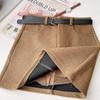 Korean Retro High-Waist Wool-Blend A-Line Skirt for Women - Autumn/Winter Hip-Hugging Slimming Design