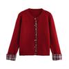 2024 Winter Women's European & American Plaid Patchwork Round Neck Knit Cardigan Sweater.
