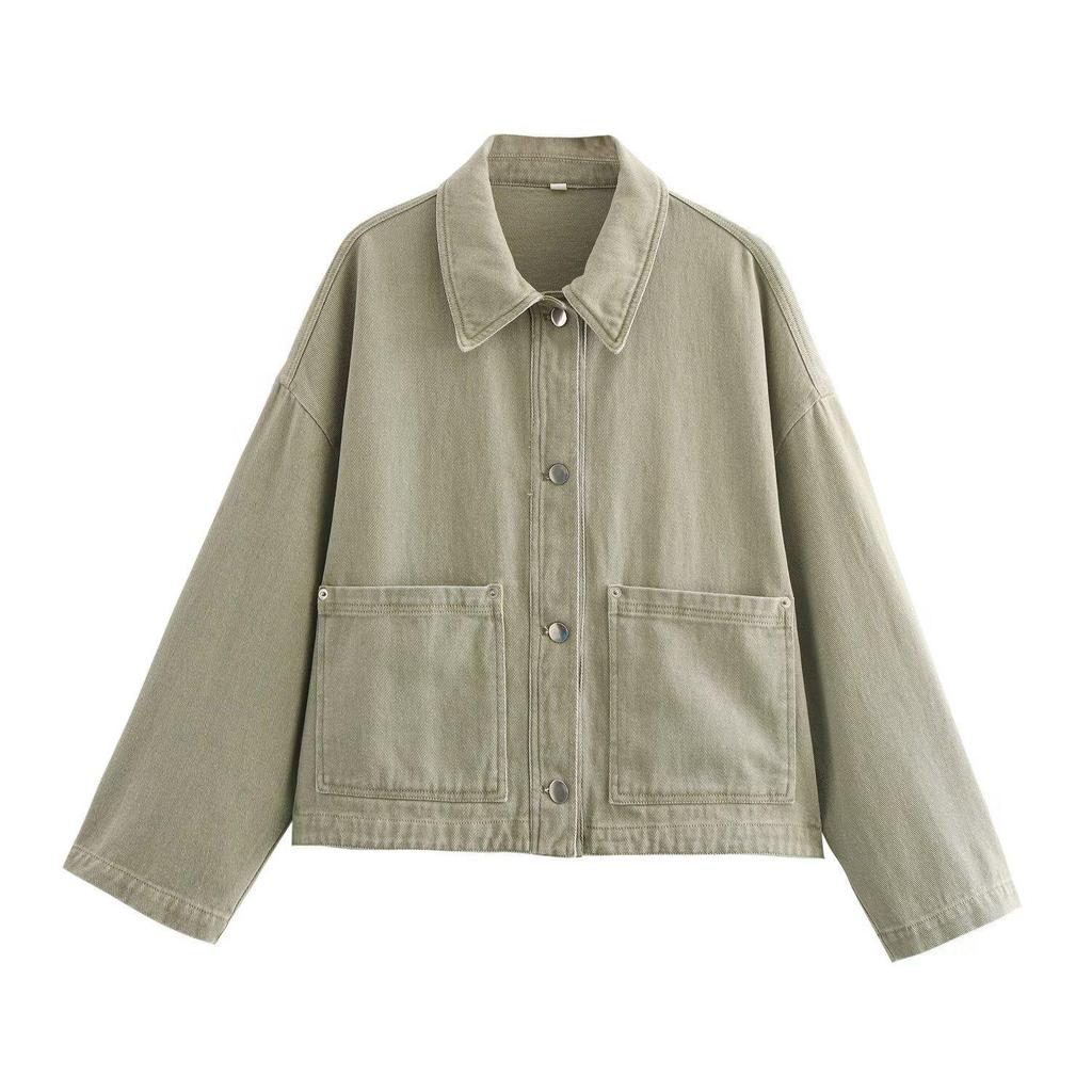 Experience the perfect blend of European charm and American style with this French design washed shirt jacket. Crafted from high-quality polyester, this piece boasts a solid pattern and features a loose fit for maximum comfort. The long sleeves and turn-down collar add a classic touch, making it a versatile addition to any wardrobe. Ideal for effortless layering, this shirt jacket combines elegance and practicality for a chic, modern look.