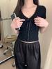 Floral Lace Trim V-Neck Women's Summer T-Shirt