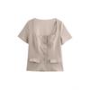 Elevate your wardrobe with this chic spring top designed for the modern woman who appreciates European and American styles. Featuring a sophisticated square neckline, this button-down top is enhanced with unique patchwork and quilted decorations, adding a contemporary touch to its design. Constructed from high-quality polyester, it ensures comfort and durability, making it a perfect choice for any occasion. Ideal for the fashion-forward female looking to make a statement, this top effortlessly combines classic elegance with modern flair.