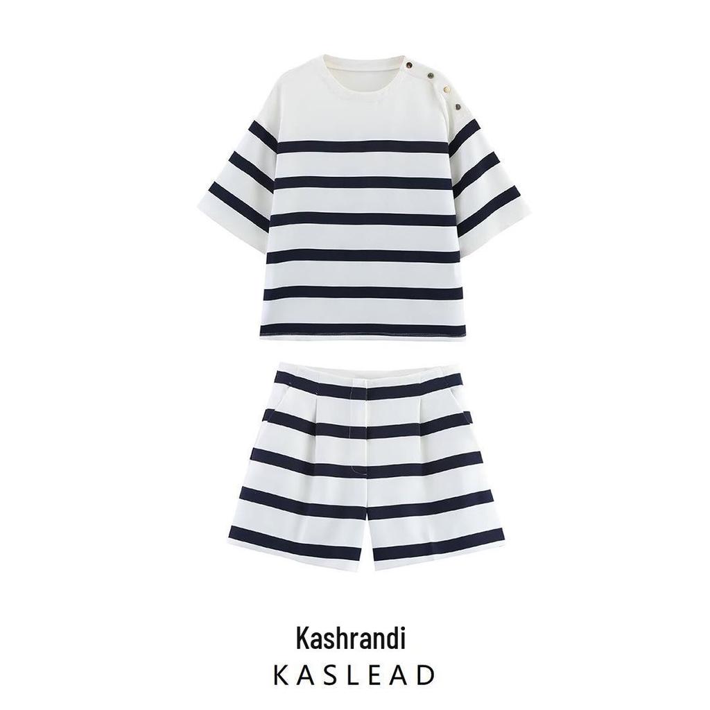 Embrace a chic and contemporary look with this stylish ensemble designed for the modern woman. The 2025 Spring Women's Striped Short Sleeve Top and Casual Shorts set captures the essence of European and American fashion trends. Featuring a playful striped pattern, this matching top and shorts are crafted from high-quality polyester, ensuring a comfortable and breathable fit. The short sleeve top pairs beautifully with the casual shorts, making it a versatile outfit for various occasions. Perfect for expressing a sense of effortless elegance, this set is ideal for those looking to update their wardrobe with a touch of fashion-forward flair.