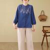 Plus Size Embroidered Cotton Linen Long-Sleeve Cardigan for Women