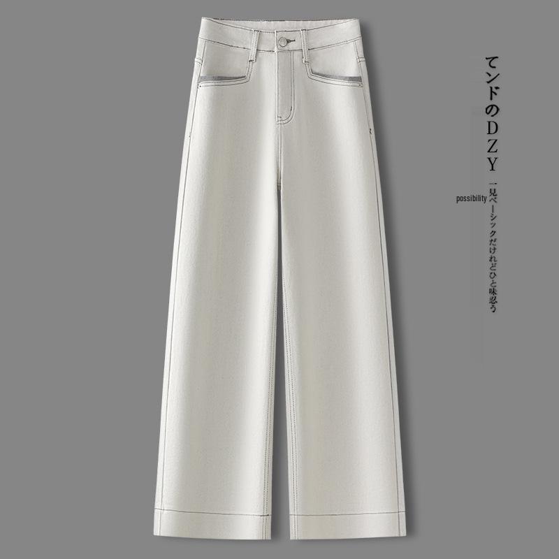 Elevate your wardrobe with these elegantly designed high-waisted wide-leg jeans, perfect for both spring and autumn. Crafted from premium cotton material, these jeans offer a comfortable and breathable fit. The slimming design creates a flattering silhouette, while the casual style makes them versatile for various occasions. With a high waistline and no additional decorations, these jeans are the epitome of simple sophistication.