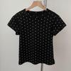 Tricou de damă gri cu buline, mânecă scurtă, croială slim fit - Stil nou vară 2025