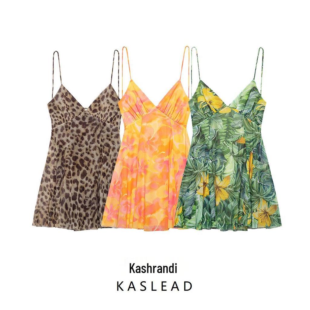 2025 Summer Women's Fashion Print Silk Mesh Dress