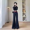 Women's Color Block Micro Flare Jeans, High Waist, Slimming Spliced Design, Loose, Floor-Length, Autumn/Winter 2024