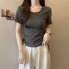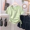 2025 Korean Style Slim Fit Short Sleeve Women's T-Shirt with Round Neck and Drawstring.