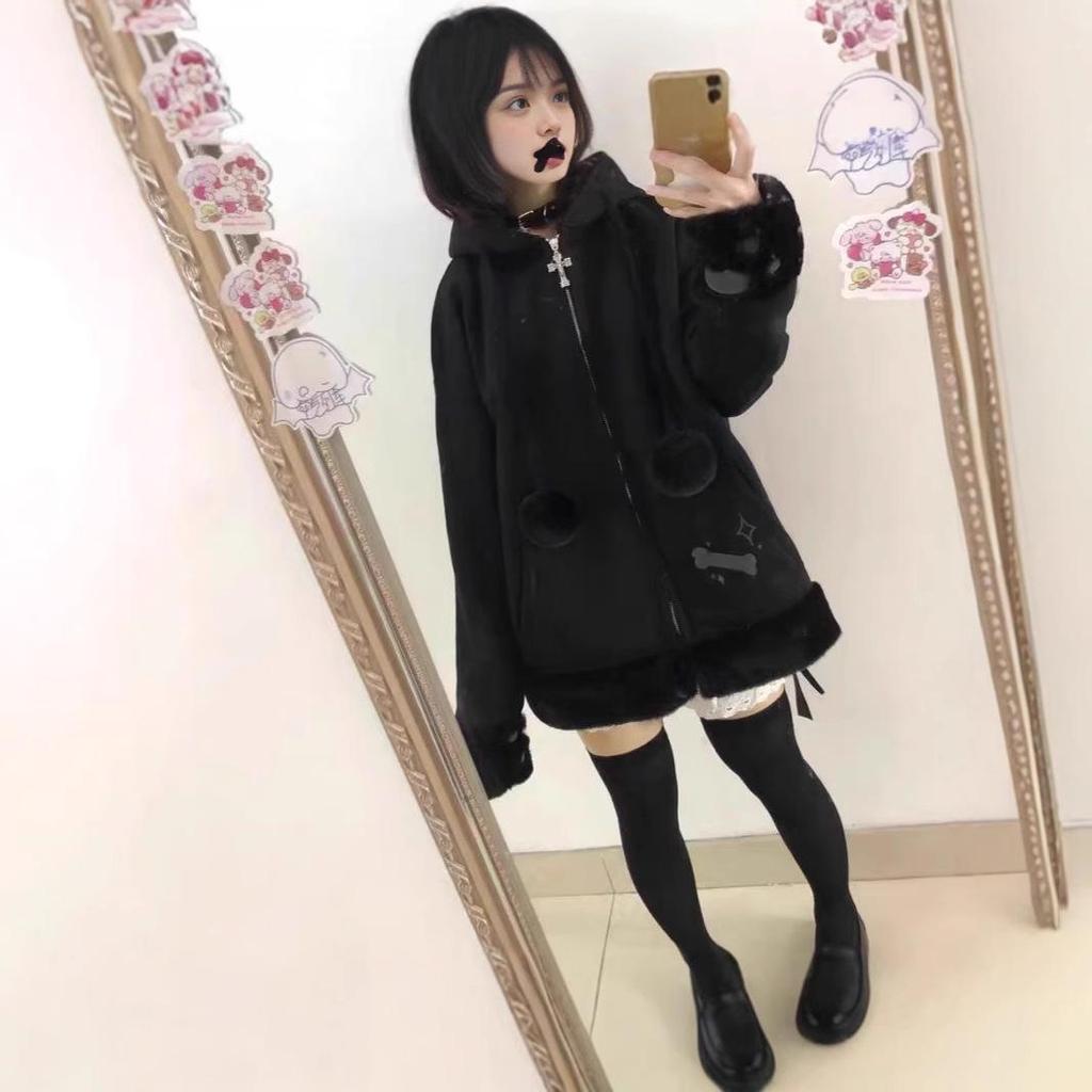 Hanorac cu glugă cu urechi de pisică, patchwork carouri Y2K Millennial - Jachetă de damă căptușită cu fleece pentru toamnă și iarnă