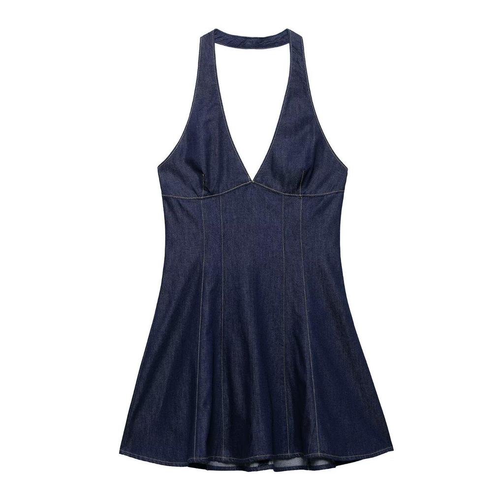2025 Spring Women's European & American Style Denim Spaghetti Strap Short Dress