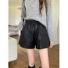 Women's High Waist A-Line PU Leather Shorts 2025 - Slimming, Elastic Waist, Wide-Leg Bootcut for Spring and Autumn.