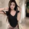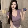 Chic Irregular V-Neck Crop Top – Flattering Summer Short-Sleeve for Women