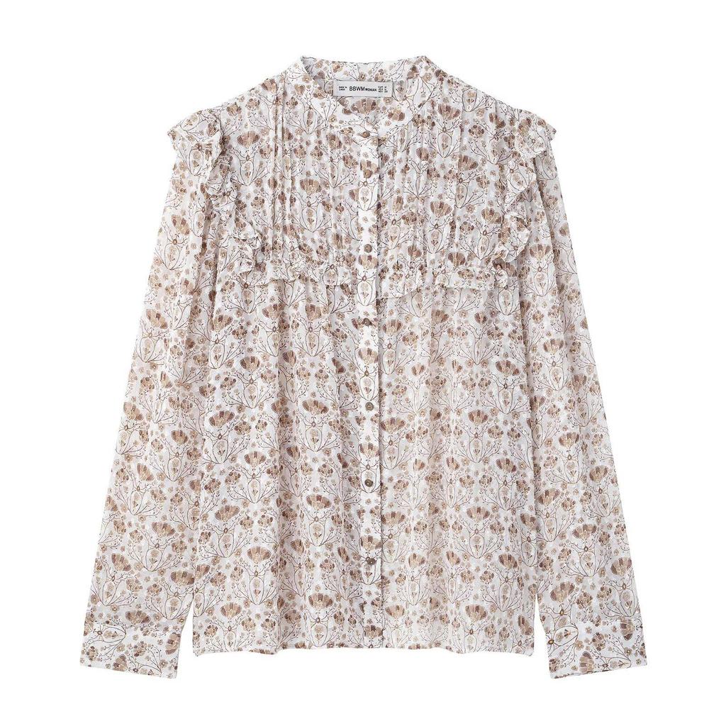 2025 Spring Women's European & American Style Tulle Print Long Sleeve Shirt