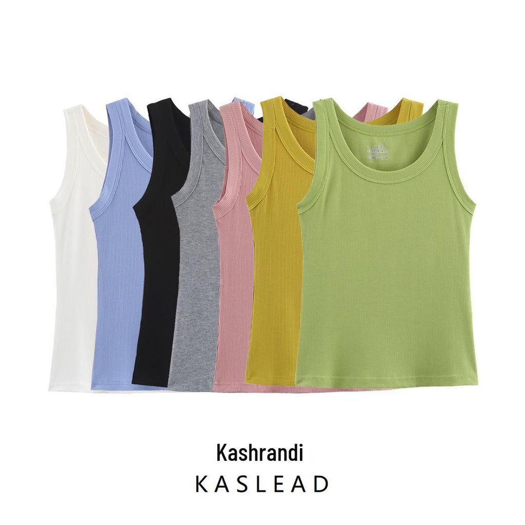 2025 Spring Women's European-American Ribbed Cotton Knitted Vest