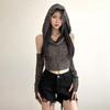Women's Summer Sleeveless Hooded Crop Top: Sexy, Ripped, Cross-Border Wasteland Style