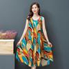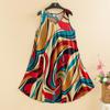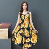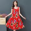Rochie A-line din bumbac și in, fără mâneci, stil etnic mărime mare - Rochie de vară tip vestă cu imprimeu retro pentru femei