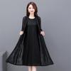 Experimentați eleganța și confortul acestui ansamblu uimitor din două piese, care prezintă o rochie de vară frumos realizată, asortată cu un șal cardigan șic de lungime medie.. Confecționat din material de mătase luxos, această ținută emană sofisticare și grație, perfectă pentru orice ocazie de vară.. Țesătura ușoară și respirabilă asigură că rămâi răcoros și confortabil, emanând în același timp un stil fără efort.. Ideal pentru ieșiri casual și adunări mai formale, acest set oferă versatilitate și un apel atemporal.