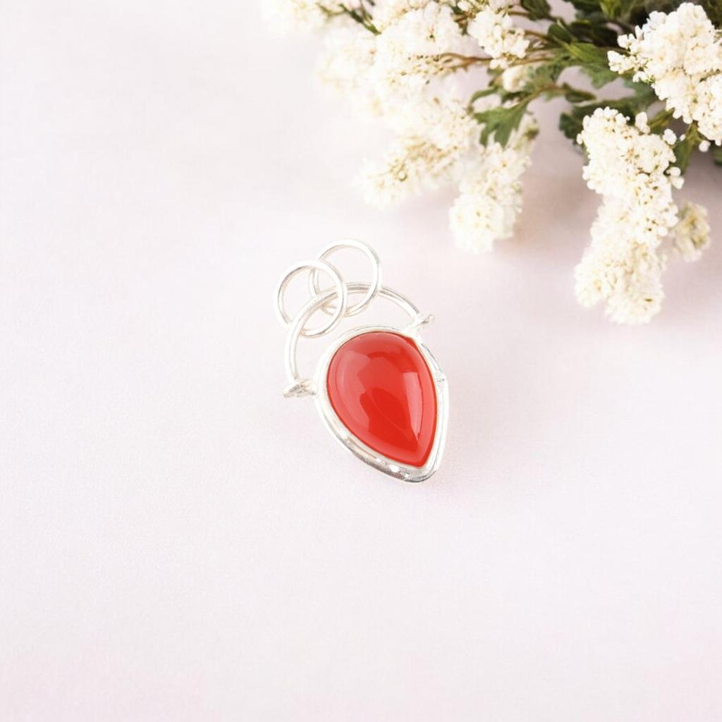 Piatră prețioasă Carneol Portocaliu Bijuterii Argint Masiv 925 Pandantiv Handmade Cadou de Nuntă PP-56-22