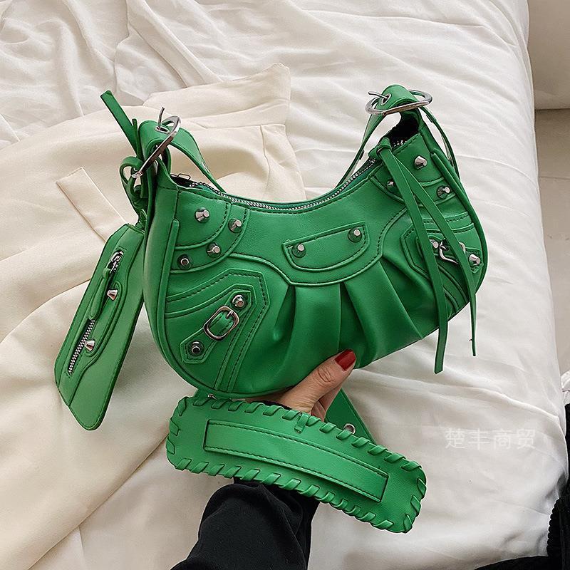 Shangxin Tang Yan same bag underarm pleated crescent bun mother shoulder bag retro rivet locomotive bag