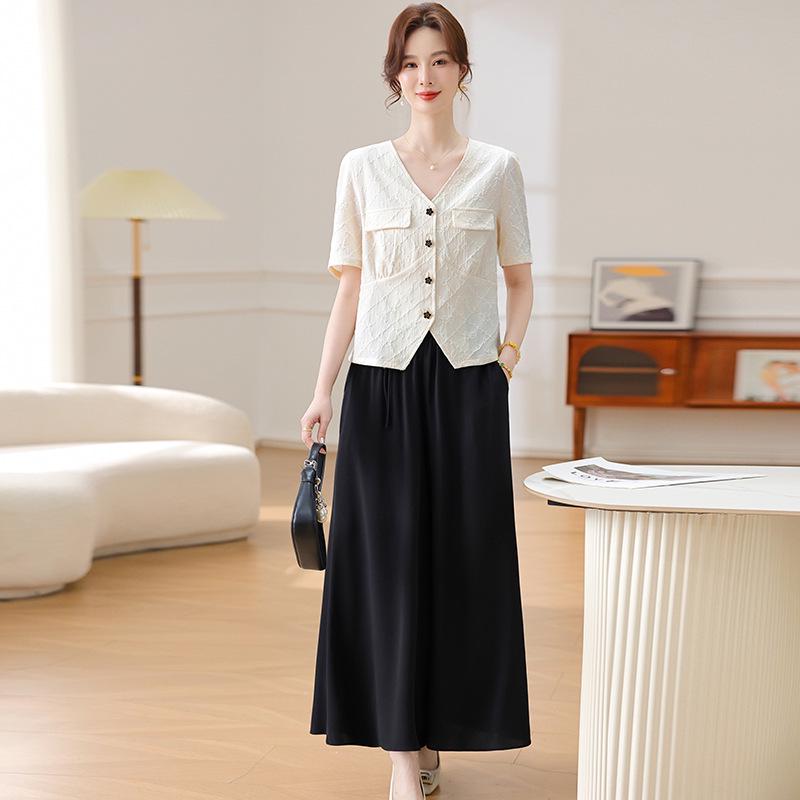 Introducing the perfect blend of style and comfort for the modern middle-aged woman, the Mom's Summer 2025 Two-Piece Set. This chic ensemble features a fashionable short-sleeve top, expertly crafted from premium polyester material. Designed to offer a flattering fit and breathable feel, this set is ideal for warm weather outings and casual gatherings. Its elegant design effortlessly complements a variety of looks, ensuring you stay stylish and comfortable throughout the season.