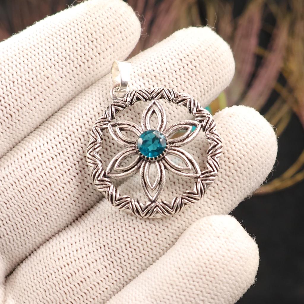 Apatite Gemstone 925 Sterling Silver Handcrafted Pendant 1.48" Gift For Sister CP-29-11