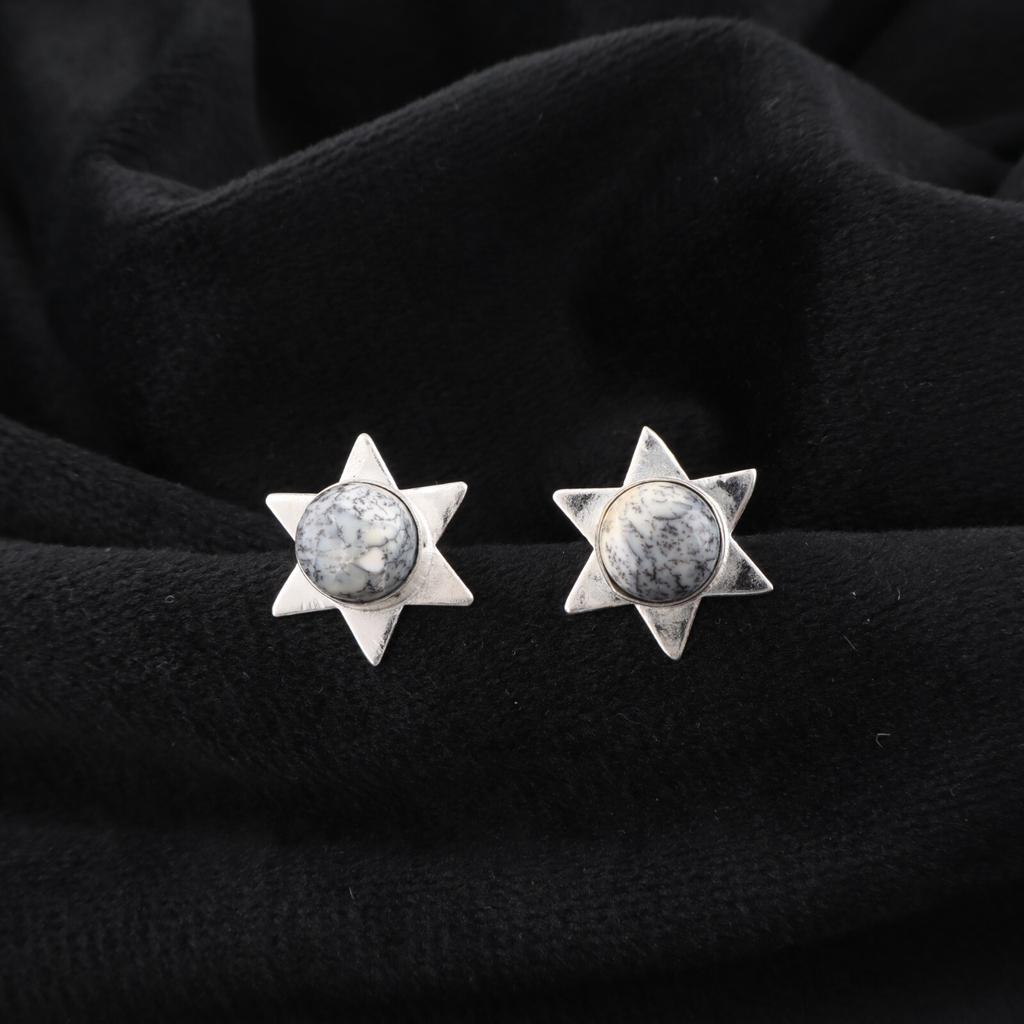 Natural Dendritic Opal Gemstone 925 Sterling Silver Jewelry Stud Earrings 0.44" EE-175-29