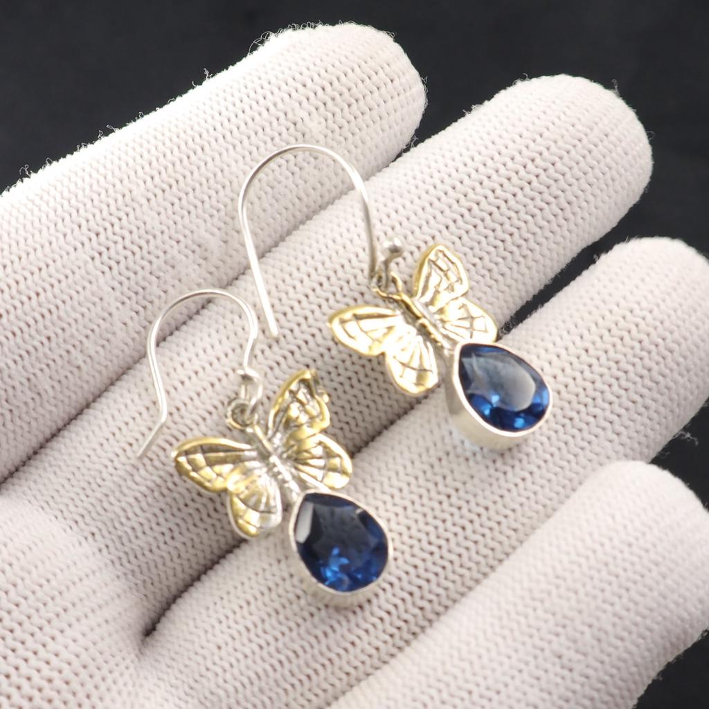 London Blue Topaz Gemstone 925 Sterling Silver Handcrafted Jewelry Earrings 1.3" EE-155-7