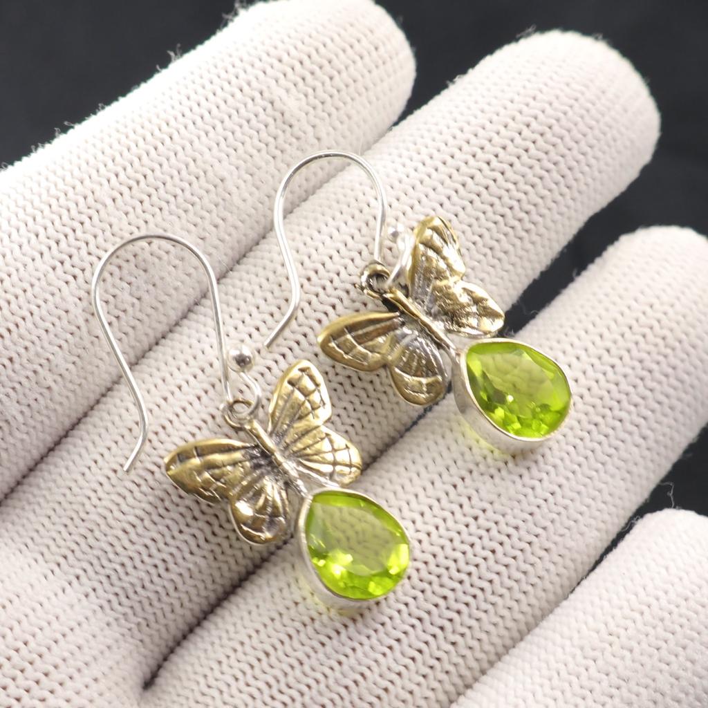 Natural Peridot Gemstone 925 Sterling Silver Handmade Drop/Dangle Earrings 1.3" EE-155-2