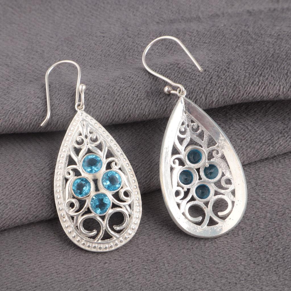 Swiss Blue Topaz Gemstone 925 Solid Silver Handmade Jewelry Hook Earrings 2.25" CE-17-6