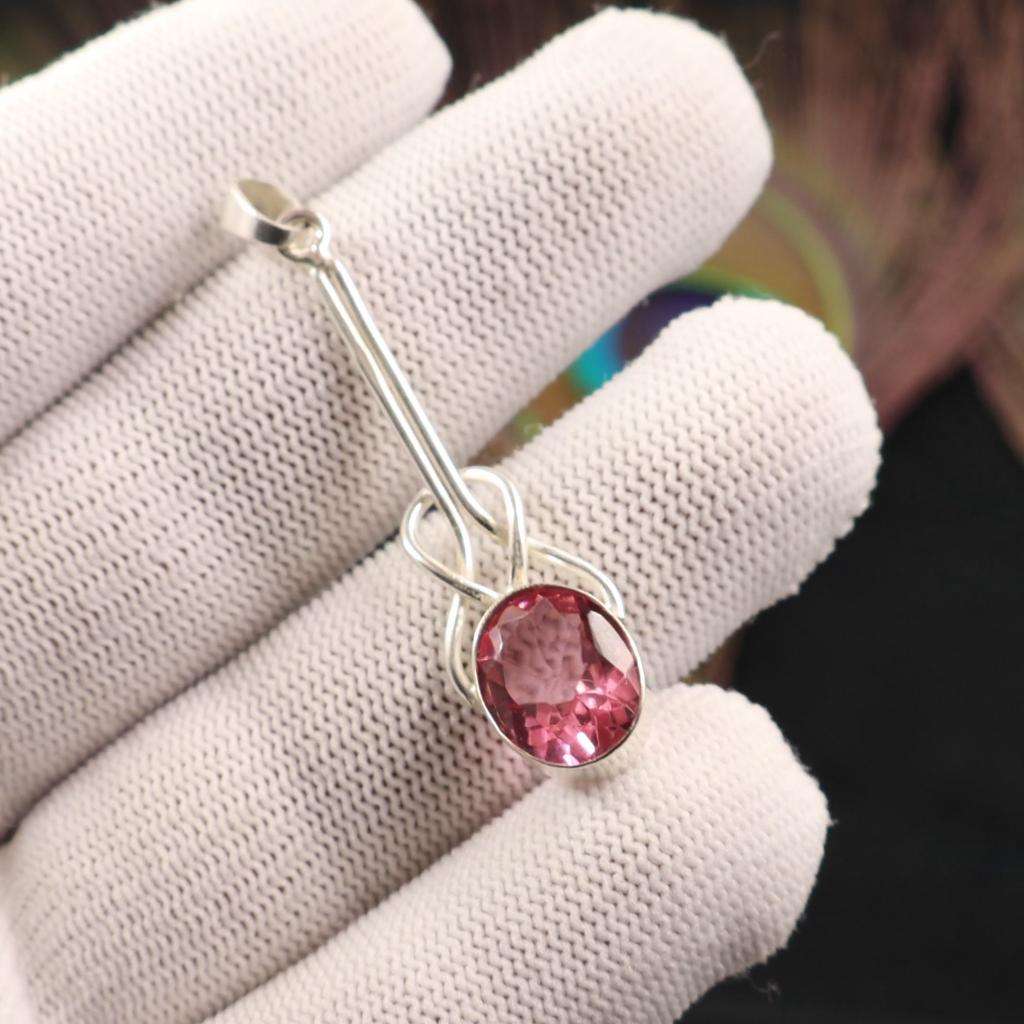 Pink Tourmaline Gemstone 925 Sterling Silver Jewelry Handmade Chain Pendant1.79" PP-60-10