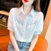 Cămașă de damă la modă din bumbac pur brodată cu mânecă scurtă - Vara 2024