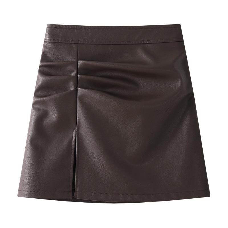 Autumn/Winter 2024 Coffee PU Leather Midi Skirt: High-End, Hip-Hugging, Slimming A-Line Design for Women