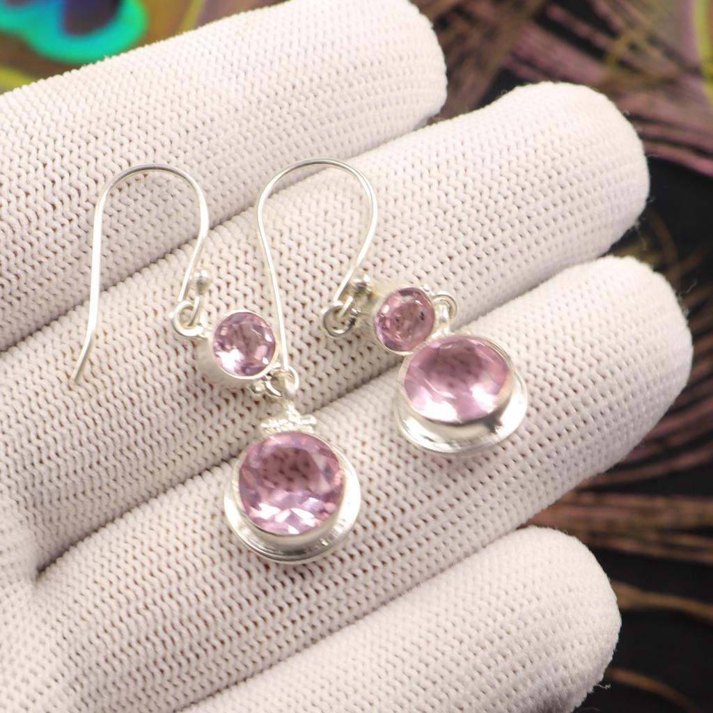 Piatră prețioasă Morganit Argint Sterling 925 Bijuterii lucrate manual Cercei formă rotundă EE-160-6