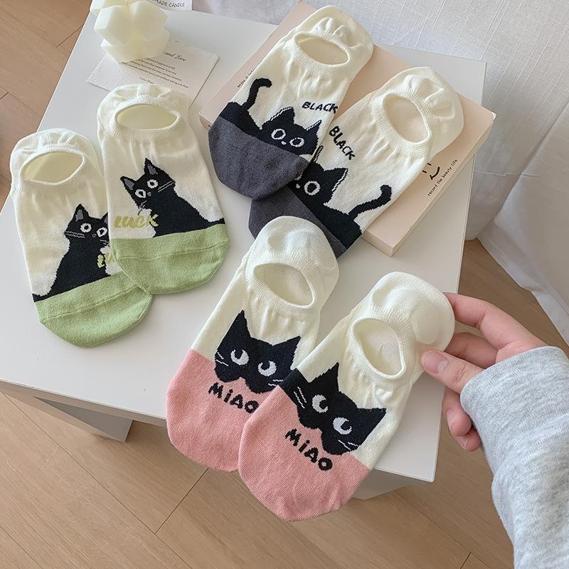 Invisible Shallow-mouth Sock Girl, Spring and Summer Cartoon Little Animal Boat Socks, Cute Short Socks, Sweat-absorbing Boneless Sock Girl
