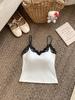 Maiou gri cu dantelă, slim fit, cu cupe de sutien încorporate - Top de vară fără mâneci pentru femei