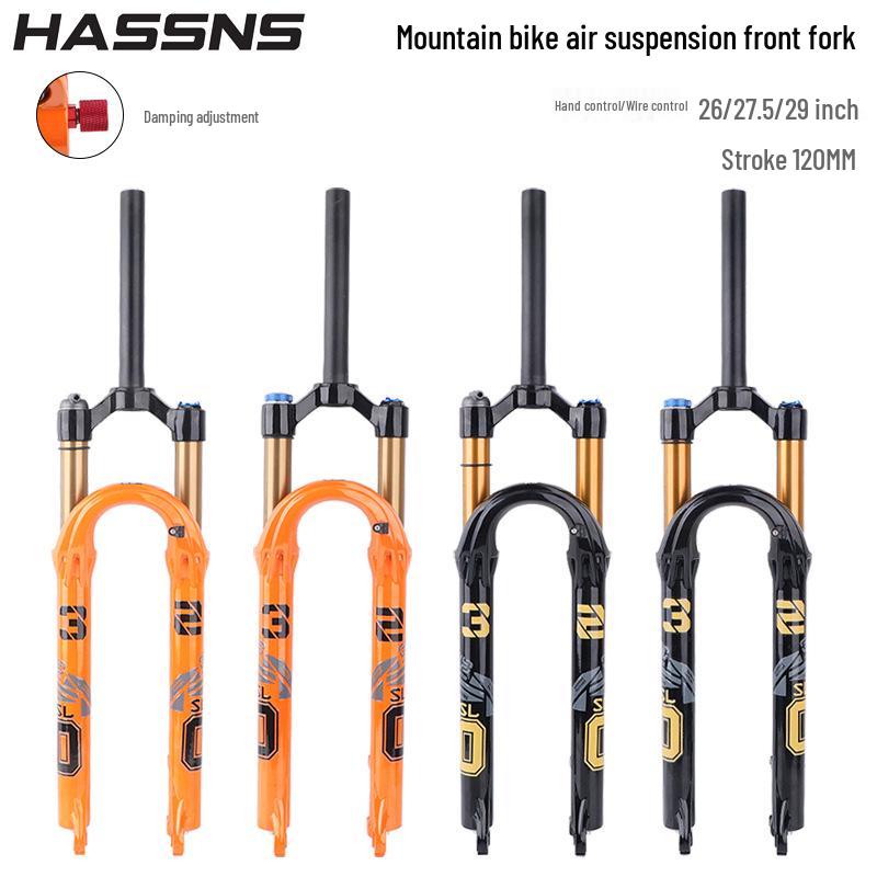 Furcă cu suspensie pe aer pentru bicicletă montană HASSNS cu reglaj de amortizare pentru roți de 26/27.5/29 inch