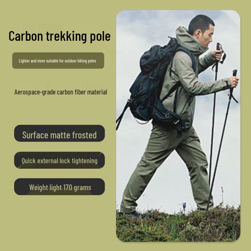 Ultralight Carbon Fiber Three-Section Trekking Poles with External Lock for Hiking and Walking