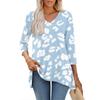 Womens Tops V-neck 3/4 Sleeve Blouses Casual Mid-length Shirts Fashion Print Tunic Tops