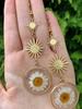 Cercei Boho cu Soare cu Crizantemă Presată Reală
