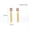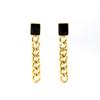 European & American Titanium Steel Tassel Earrings with Square Zircon Studs - High-end Light Luxury