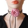 Colier choker boem din catifea cu trandafir camelia pentru femei
