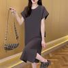 YYFS Moda femei vară primăvară mâneci scurte decolteu o talie largi rochii casual